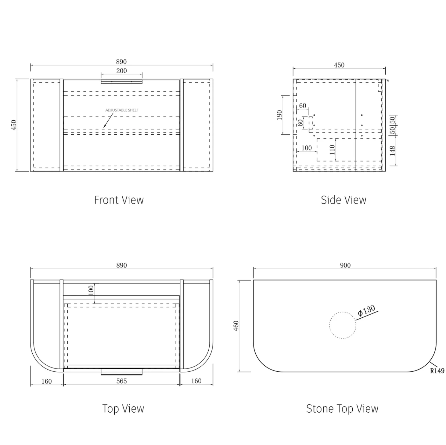 Single Drawer, High moisture resistant plywood with adjustable internal shelf (Shelf will require a cutout to be done by tradesmen to allow for waste) |