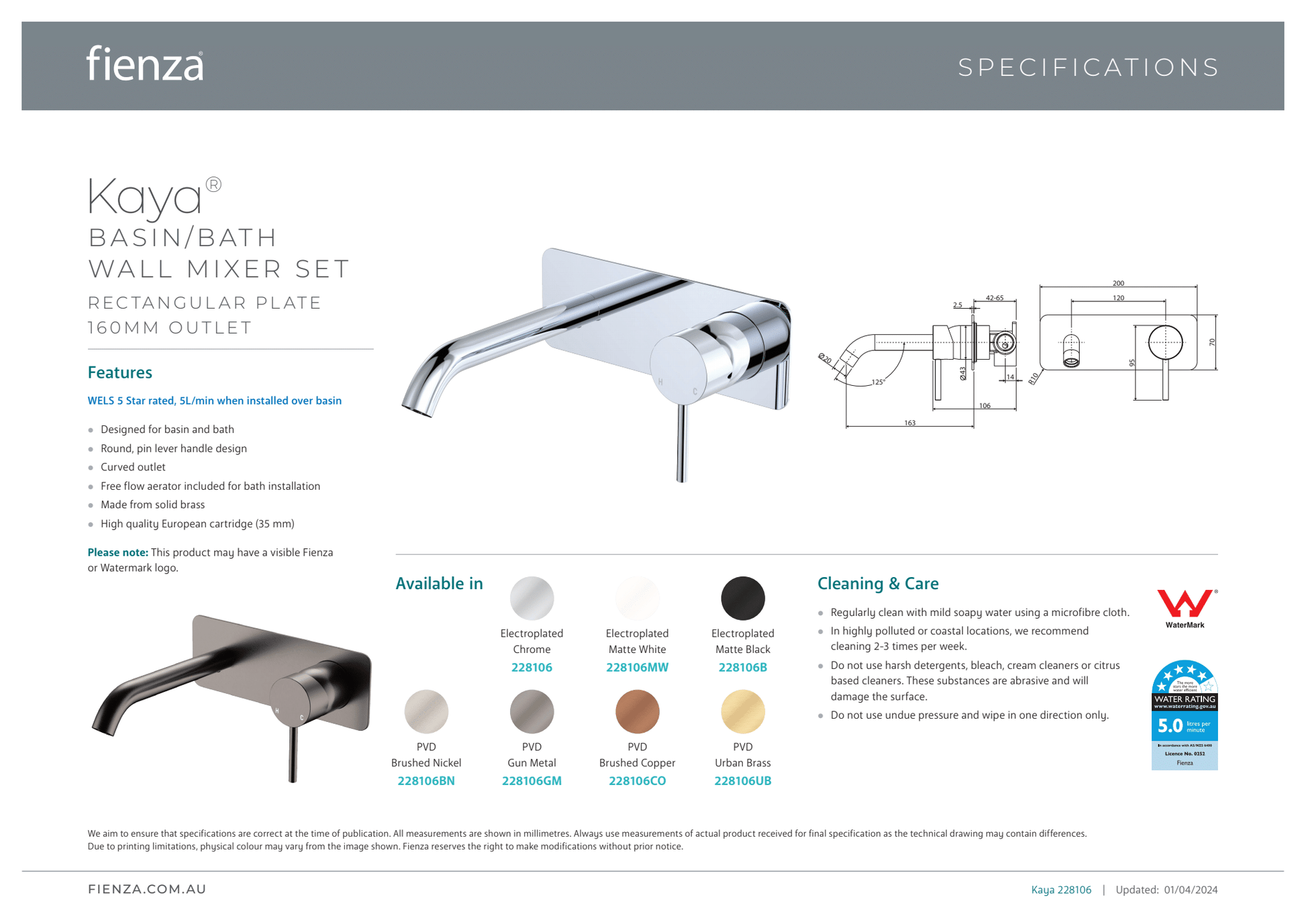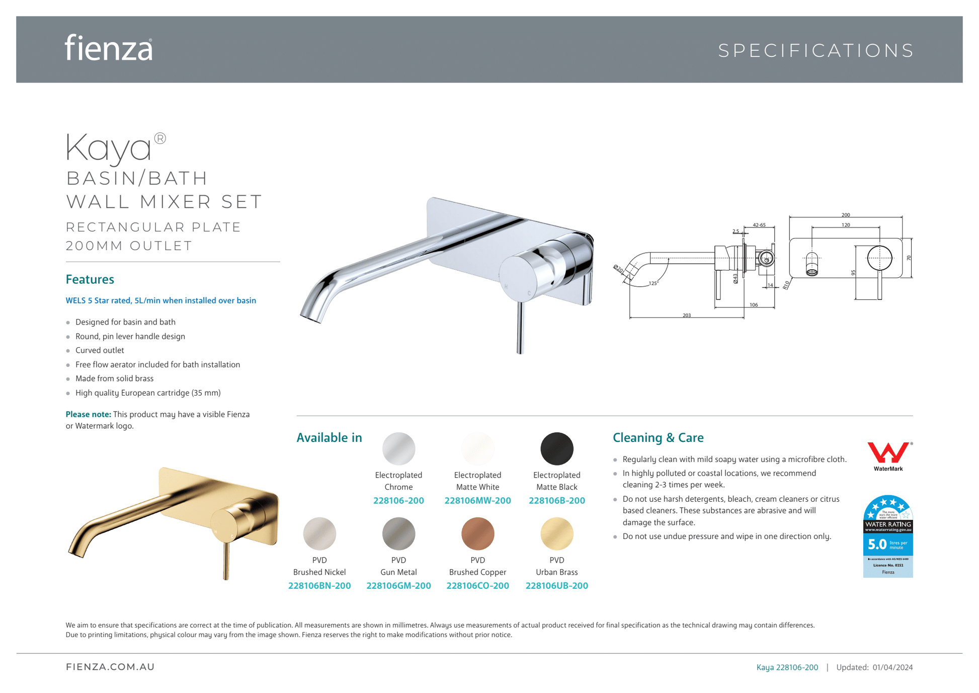 Kaya Basin/Bath Wall Mixer Set Rectangle Plate