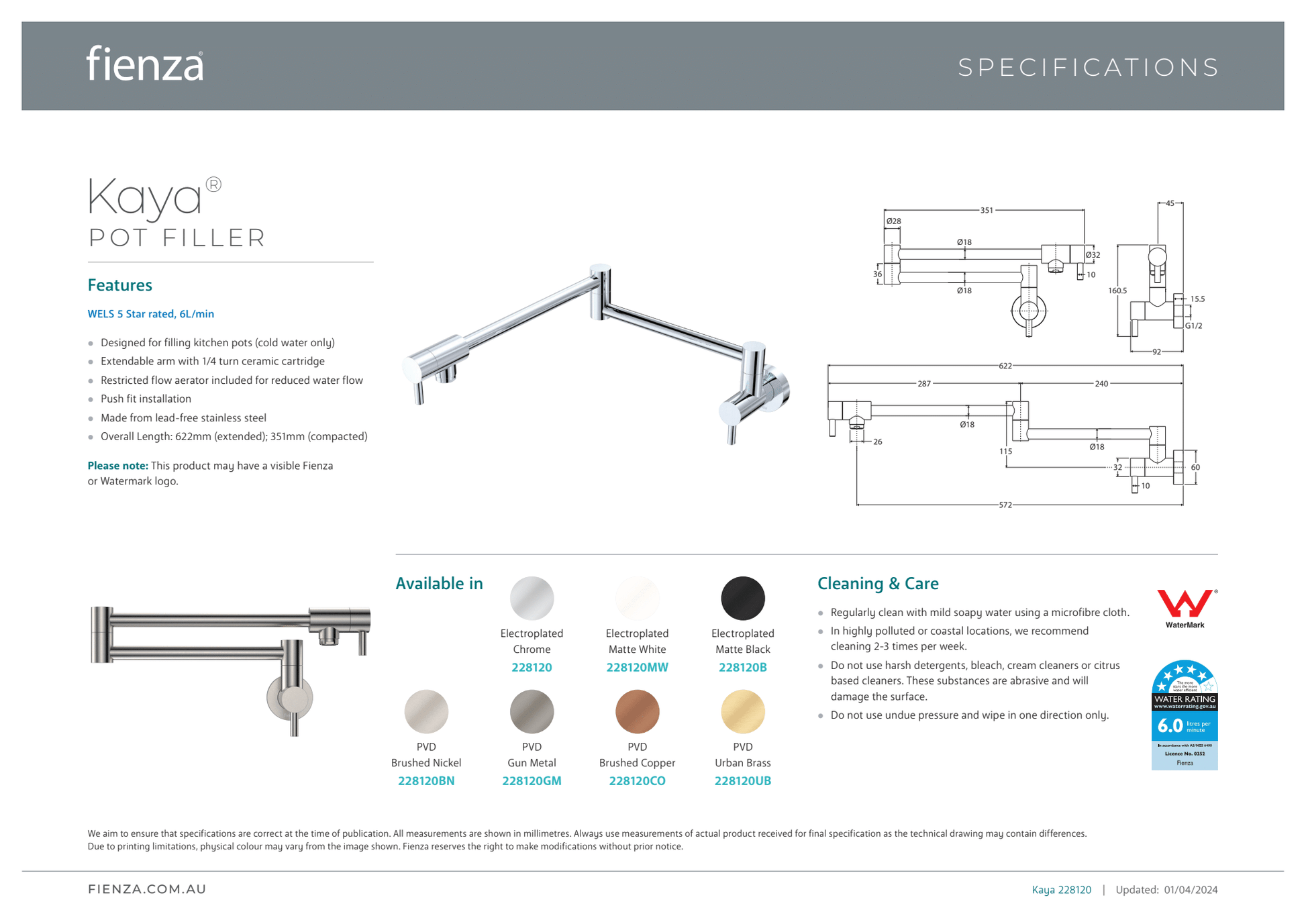 WELS 5 Star rated, 6L/min