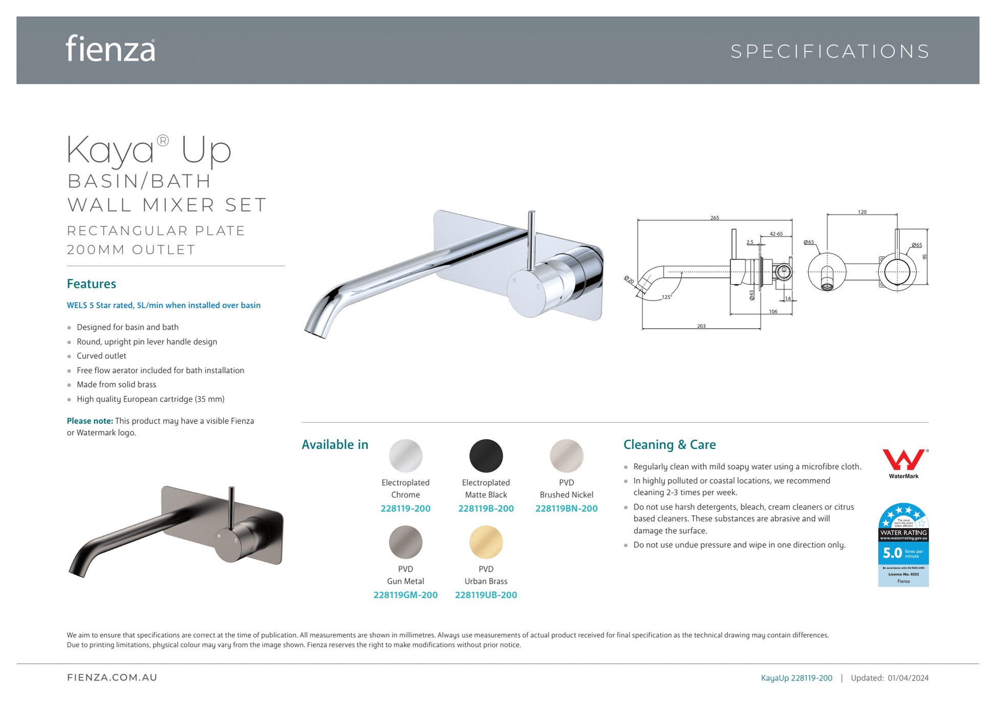 Kaya Up Basin/Bath Wall Mixer Set Rectangle Plate