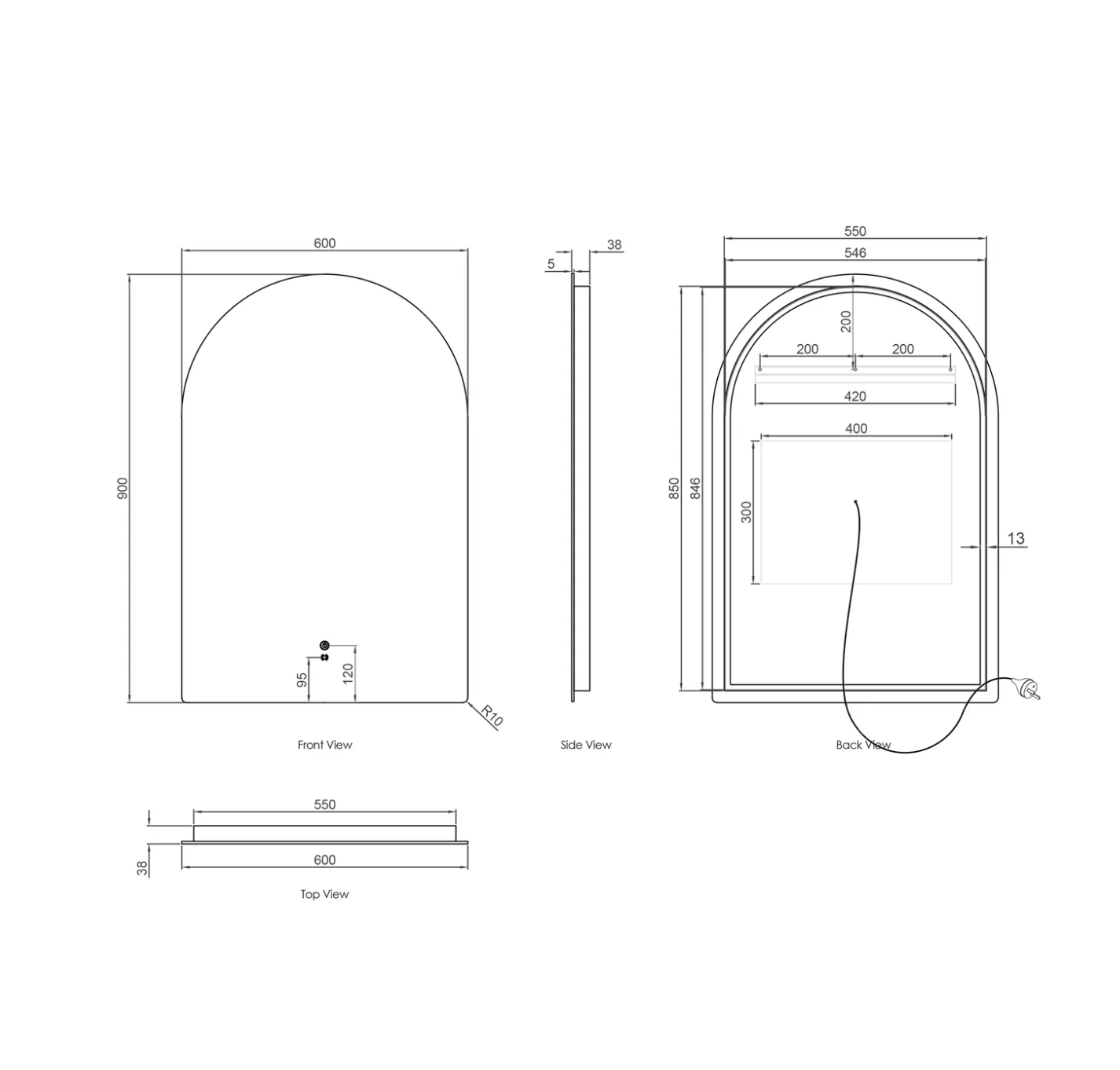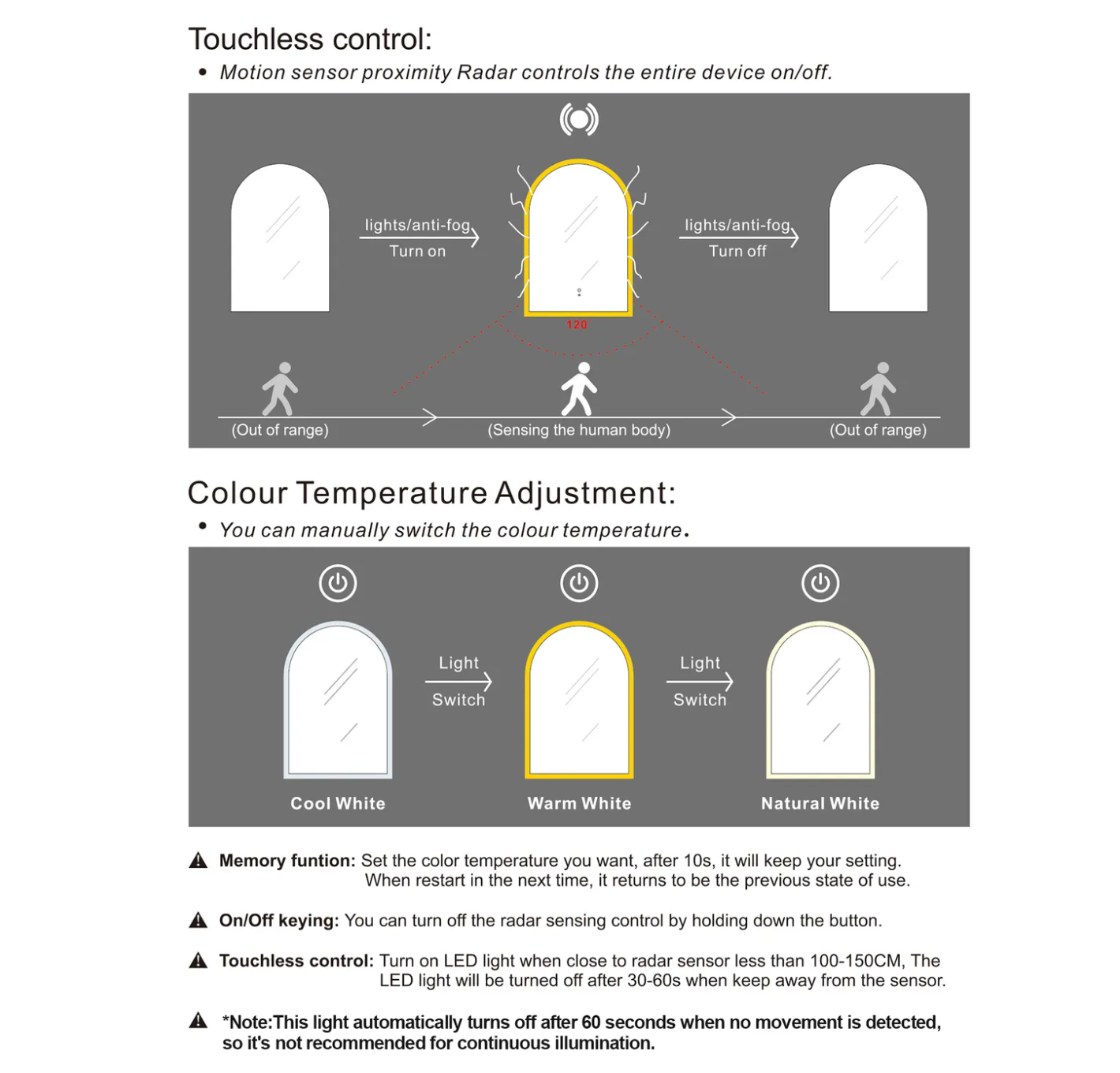 | • Anti-fog + 5mm Copper-free mirror With Acrylic Frame |