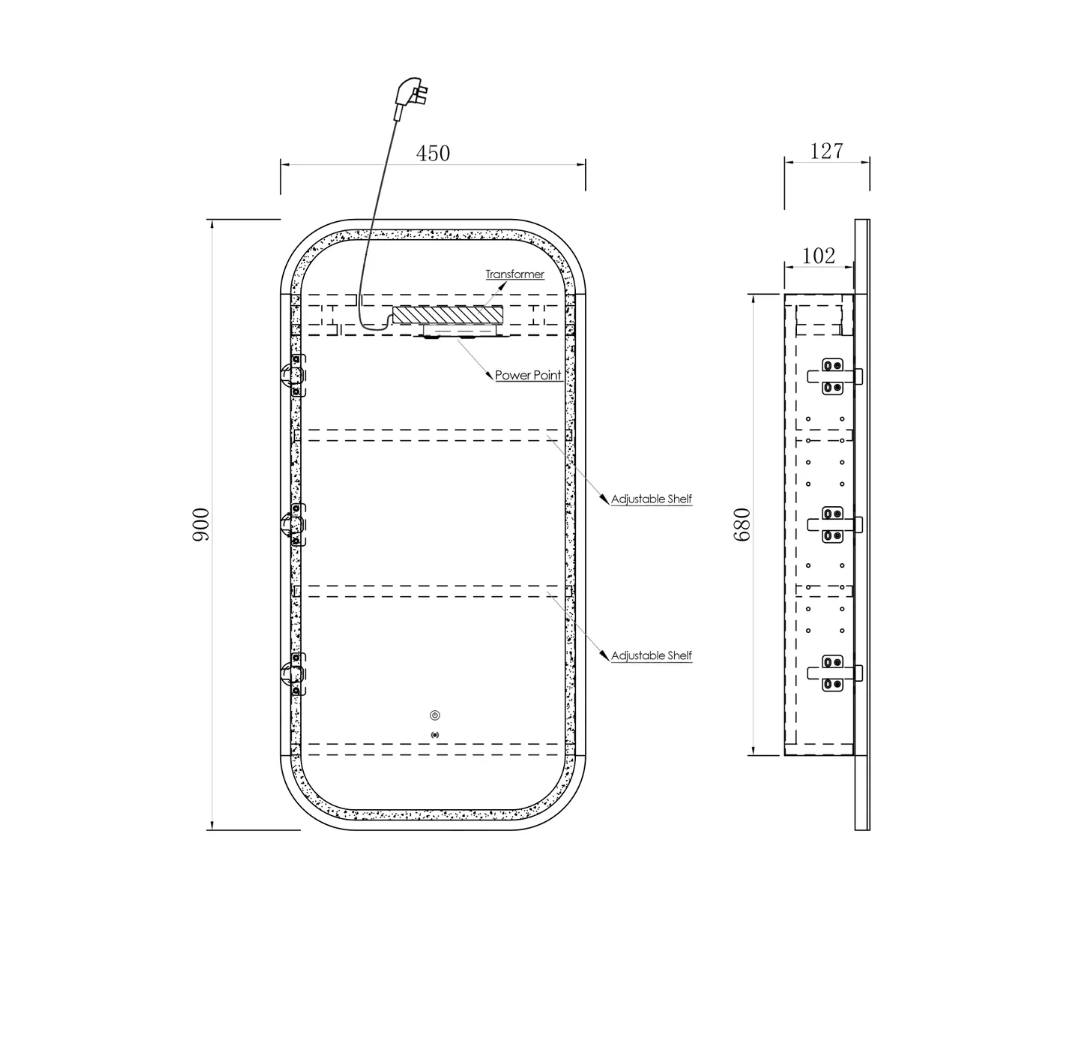 | Cabinet | 680x450x102mm |