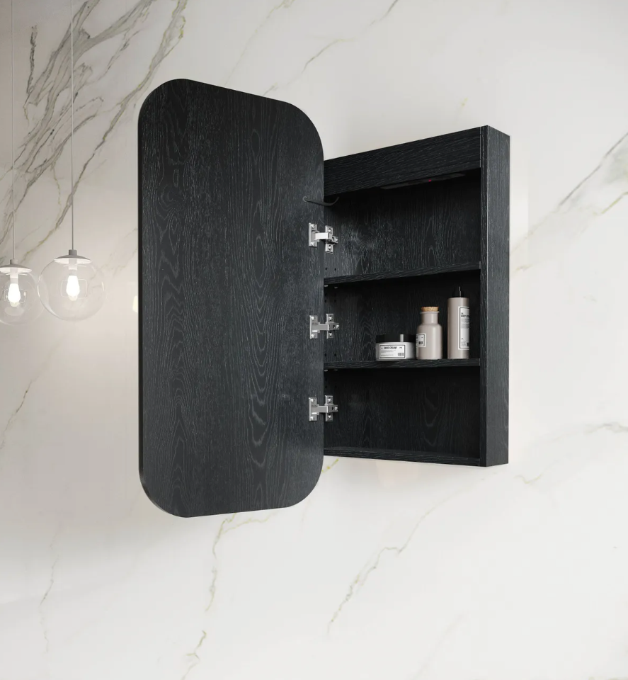 LED Matte Black Oak Shaving Cabinet - 900x450