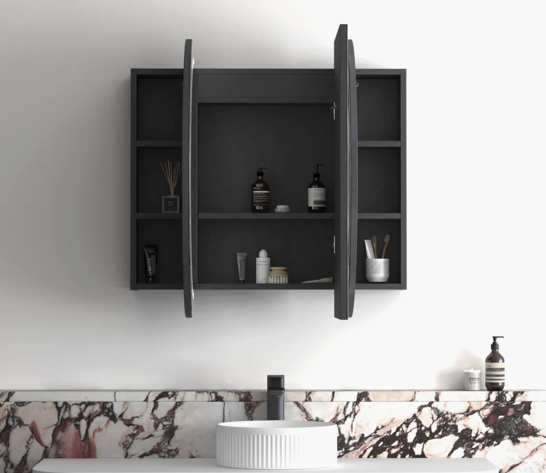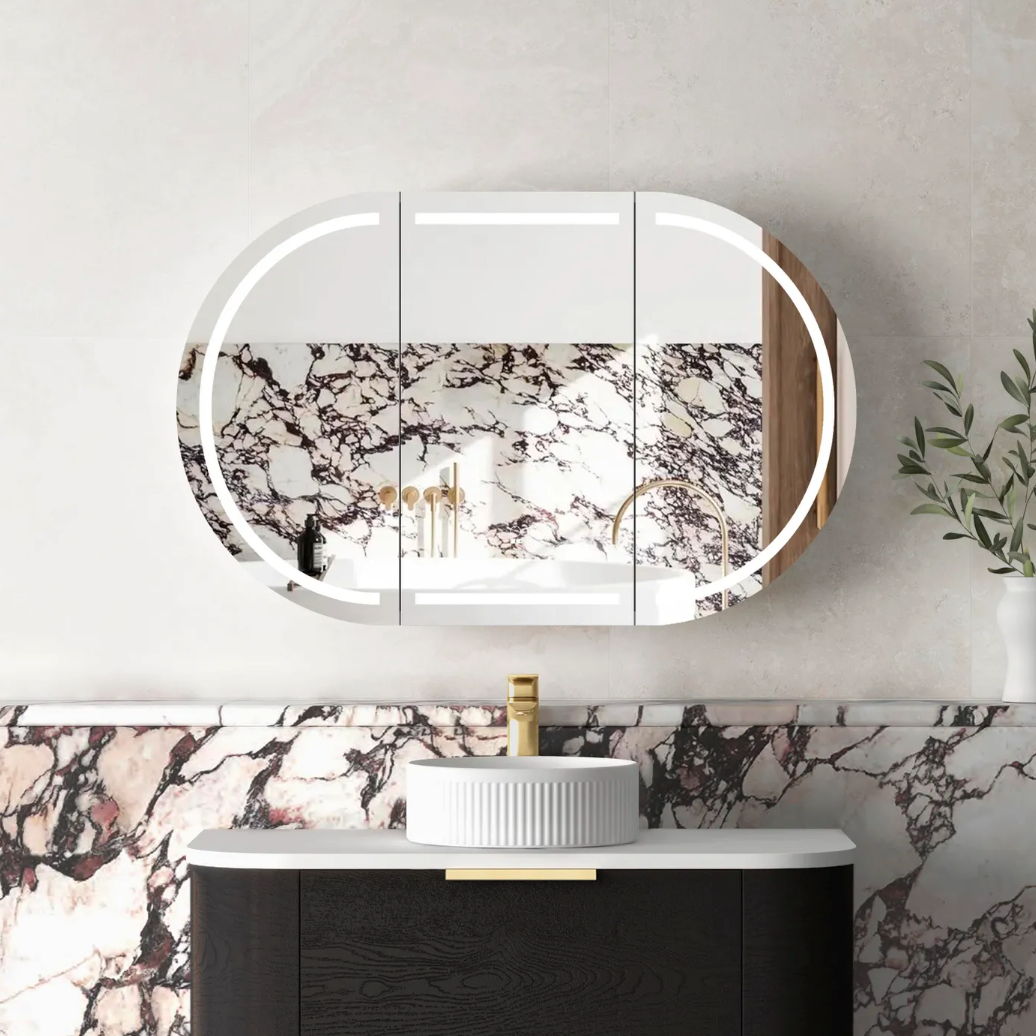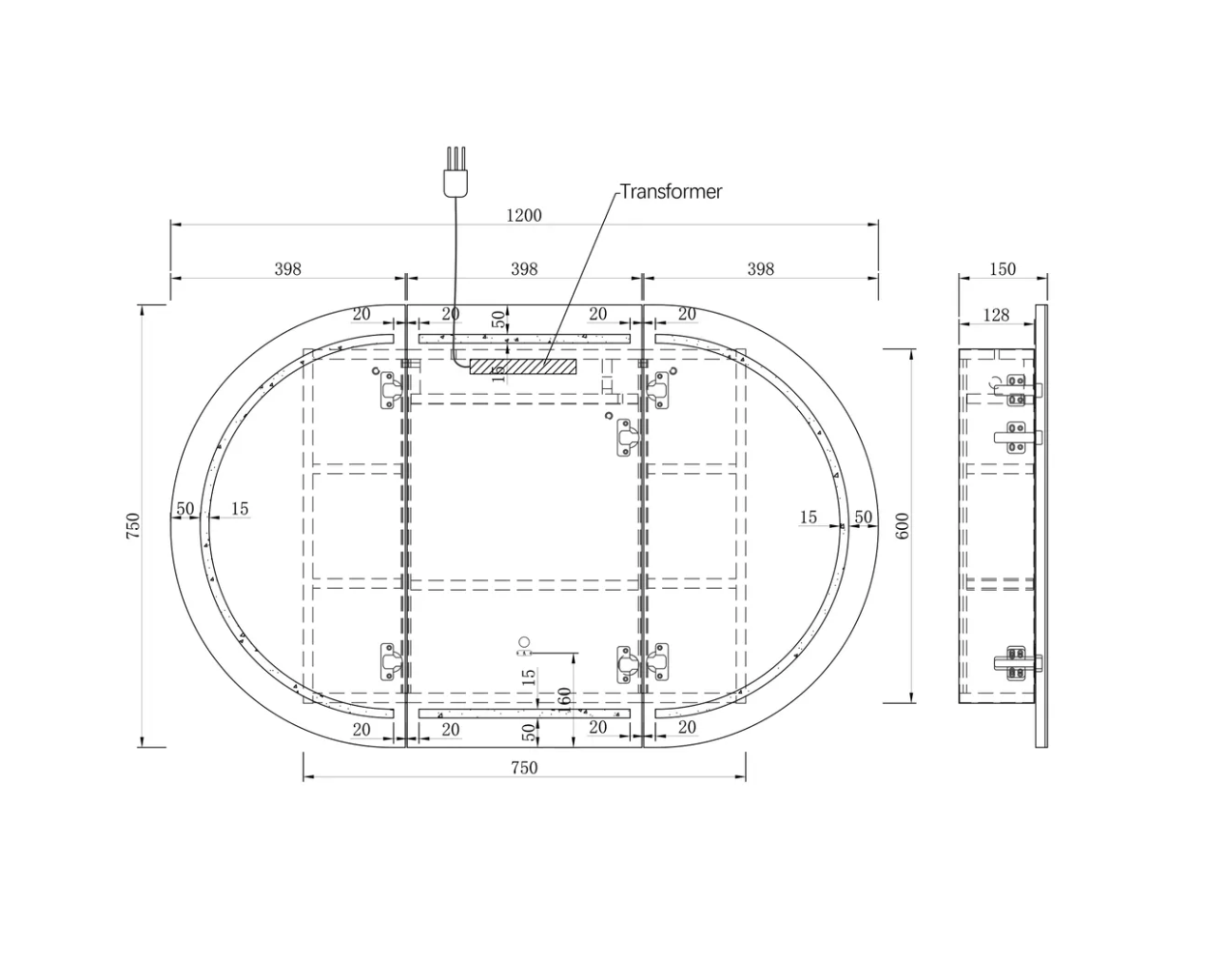 LED Oval Black Oak Shaving Cabinet - 1200x750